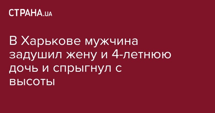 В Харькове произошло жестокое преступление  -  мужчина задушил 30-летнюю жену и 4-летнюю дочь, после чего сел в машину и уехал, а спустя время правоохранители нашли его труп. Об этом сообщает харьковское издание "Городской дозор".
