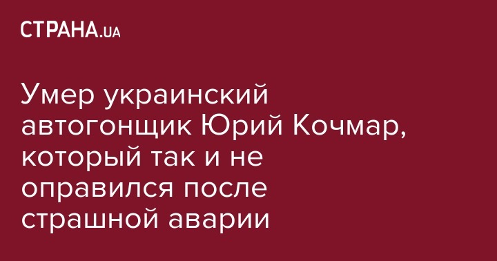 Сегодня ночью ушел из жизни украинский спортсмен, пилот команды Odessa Rally Team Юрий Кочмар. Об этом сообщает XSport.