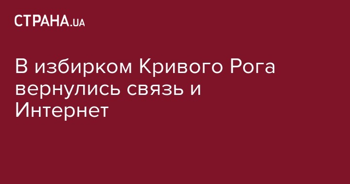 Между избирательными комиссиями в Кривом Роге восстановили связь, сообщил начальник комбинированного центра телекоммуникаций Виктор Грищенко корреспонденту УНН.