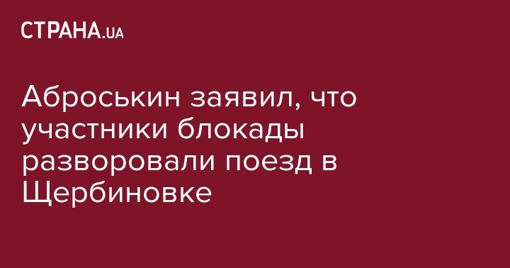 "Укрзализныця" заявила, что похищены груз и комплектующие на электровоз с вагонами, который удерживался участниками блокады в поселке Щербиновка. Об этом рассказал на своей странице в Facebook начальник Главного управления Нацполиции в Донецкой области, заместитель главы Нацполиции Вячеслав Аброськин.