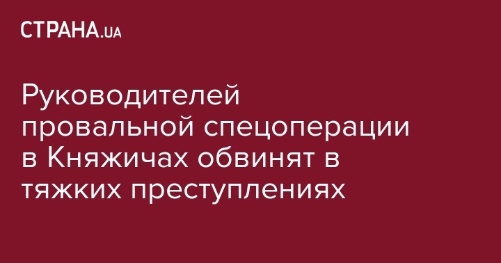 Руководители полицейской операции в Княжичах под Киевом, которая закончилась перестрелкой и пятью погибшими полицейскими, будут обвинены в тяжких преступлениях, которые не предусматривают условный срок. Об этом в эфире телеканала ZIK сказал генпрокурор Юрий Луценко, передает "Интерфакс-Украина".