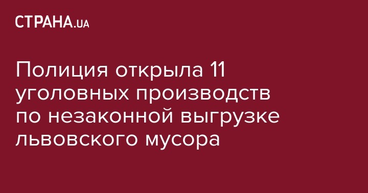 Национальная полиция открыла 11 уголовных производств по выявленным фактам незаконной выгрузки мусора из Львова в других регионах Украины. Расследования ведутся по ч.1 ст.239 (загрязнение или порча земель) Уголовного кодекса Украины.