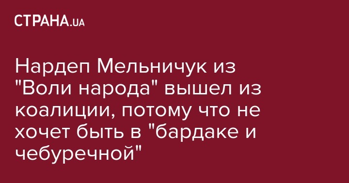 Народный депутат из группы "Воля народа" Сергей Мельничук заявил, что выходит из парламентской коалиции. Об этом он заявил с трибуны Рады в четверг, 16 марта, передает "Украинская правда".
