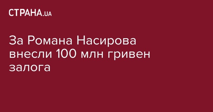 За отстраненного главу государственной фискальной службы (ГФС) Романа Насирова внесли требуемый залог в 100 млн грн.