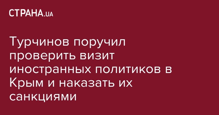 "СБУ должна подготовить и подать на рассмотрение СНБО Украины перечень официальных лиц из Европарламента, а также политиков из стран Европейского Союза, СНГ и Латинской Америки, которые, по сообщениям российских СМИ, прибыли с трехдневным визитом в аннексированный Крыма", - заявил Турчинов.