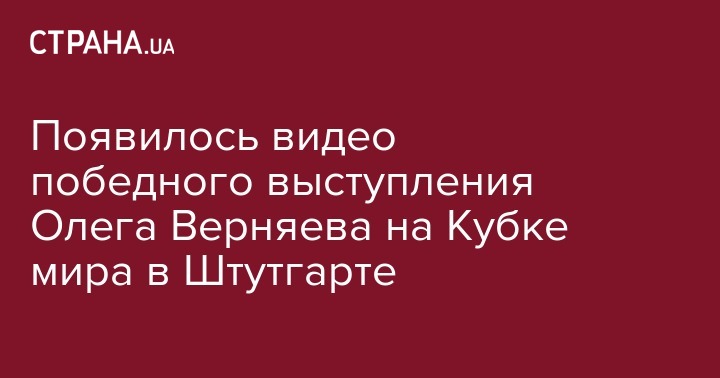 Украинский чемпион Олимпийских игр в Рио-де-Жанейро, гимнаст Олег Верняев стал победителем четвертого этапа Кубка мира по спортивной гимнастике в Штутгарте (Германия) в многоборье. Видео "золотого" выступления украинского спортсмена появилось на канале в YouTube.