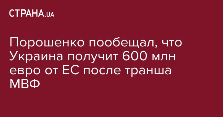 "Макрофинансовая помощь от ЕС поступит сразу после выделения транша МВФ", – сказал Порошенко.
