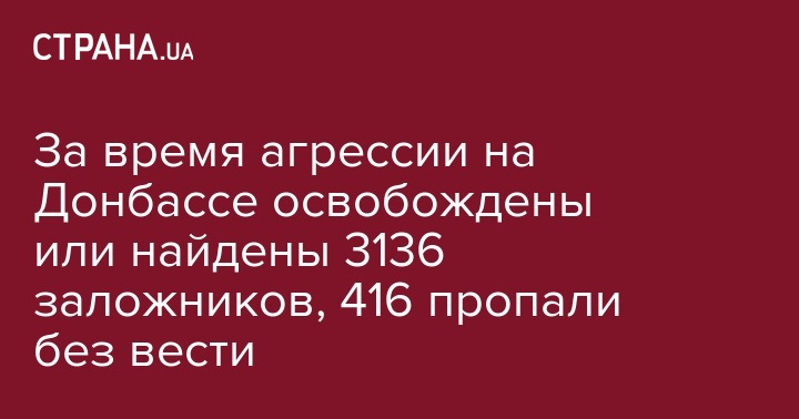 Советник главы СБУ Юрий Тандит заявил, что за время агрессии на Донбассе освобождены или найдены 3136 заложников, еще 416 человек пропали без вести. Об этом сообщает "5 канал".