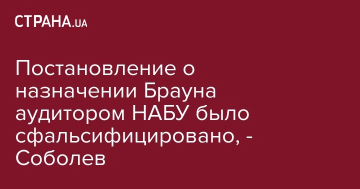 Нардеп Егор Соболев заявил, что проект постановления о назначении аудитором НАБУ Найджела Брауна был сфальсифицирован. Об этом Соболев написал в Facebook.