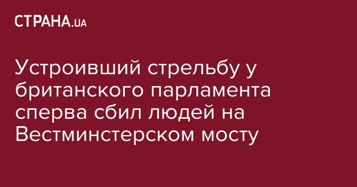 Устроивший, квалифицированную как теракт, перестрелку у здания парламента Великобритании, перед этим, на автомобиле сбил людей на Вестминстерском мосту. Об этом сообщает британский телеканал Sky News со ссылкой на собственные источники.