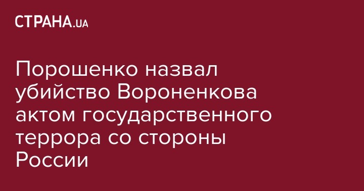 "Коварное убийство в центре Киева Игоря Вороненкова - это акт государственного терроризма со стороны России, которую он был вынужден покинуть из политических соображений. Явный почерк российских спецслужб, ранее неоднократно проявлялся в разных европейских столицах", - заявил президент.
