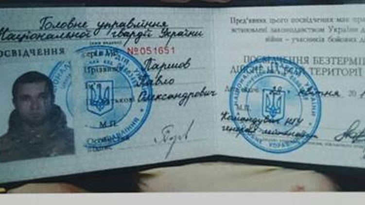 Павел Александрович Паршов 1988 года рождения, уроженец Севастополя, проживавший в Днепре. На месте убийства Вороненкова была найдена барсетка Паршова, а в ней - две выписки из приказа. В первой, датированной августом 2015 года, говорится о зачислении в списки личного состава в/ч 3057 Национальной гвардии Украины. Во второй (август 2016 года) - об исключении из списков личного состава и снятии с довольствия.