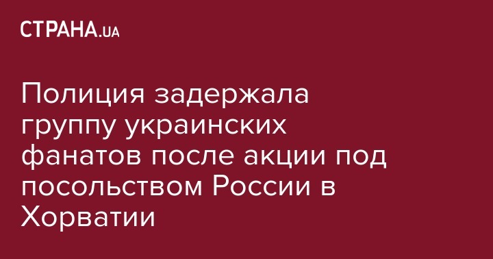 В Загребе полиция задержала группу украинцев, которые приехали на футбольный матч нашей сборной с Хорватией, но перед этим устроили политическую акцию с украинскими флагами под входом в посольство России. Об этом в Facebook написал один из задержанных Максим Кицюк.