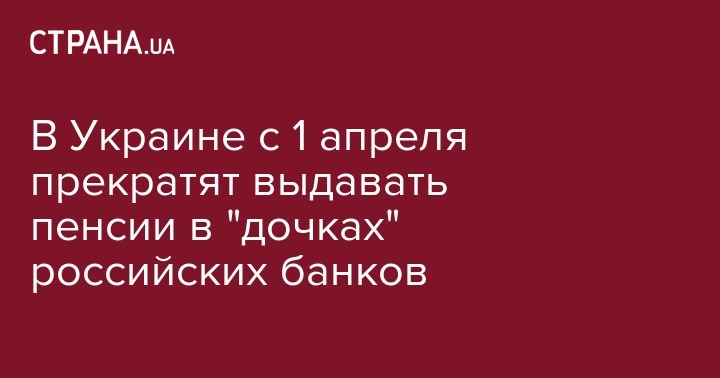 Пенсионный фонд с 1 апреля приостанавливает выплату пенсий через отделения украинских "дочек" российских госбанков. Об этом сообщает Урядовый курьер.