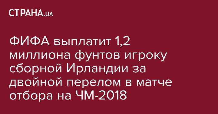 ФИФА выплатит 1,2 миллиона фунтов игроку сборной Ирландии за двойной перелом в матче отбора на ЧМ-2018