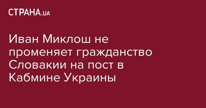 Иван Миклош не променяет гражданство Словакии на пост в Кабмине Украины