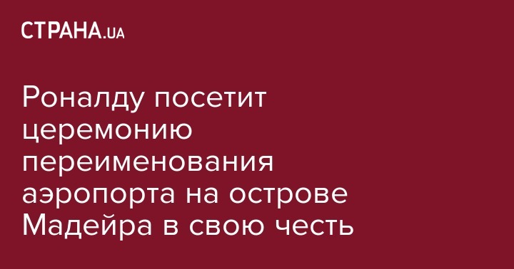 Португальская звезда "Реал Мадрида" Криштиану Роналду примет участие в церемонии переименования аэропорта на острове Мадейра в Португалии в свою честь. Об этом сообщает ВВС.