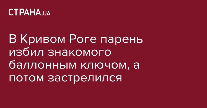 В Кривом Роге вчера вечером 21-летний парень набросился на своего 29-летнего знакомого с баллонным ключом, а затем покончил с жизнью, выстрелив себе в голову из охотничьего ружья. Об этом сообщает пресс-служба днепропетровской полиции.
