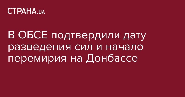 В ОБСЕ подтвердили дату разведения сил и начало перемирия на Донбассе