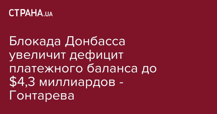 Глава Нацбанка Валерия Гонтарева заявила, что торговая блокада Донбасса увеличит дефицит платежного баланса до $4,3 миллиардов, сообщает Укринформ.