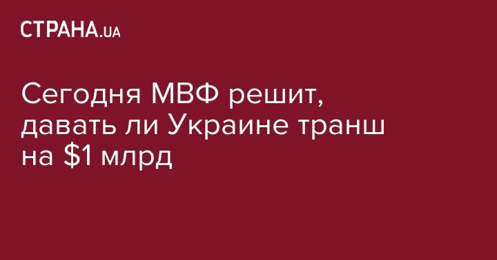 В понедельник, 3 апреля, Совет директоров Международного валютного фонда (МВФ) рассмотрит вопрос о выделении транша Украине на сумму $1 млрд. Об этом сообщают РИА Новости.