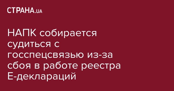Национальное агентство по предупреждению коррупции (НАПК) намерено подать в суд на ГП "Украинские специальные системы" из-за сбоев в работе Единого государственного реестра деклараций. Об этом сообщает УНН.