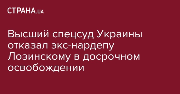 Как сообщала "Страна", Бориспольский райсуд Киевской области условно-досрочно освободил Лозинского. Апелляционная инстанция оставила решение суда без изменений. Прокуратура обжаловала в кассационном порядке это решение.