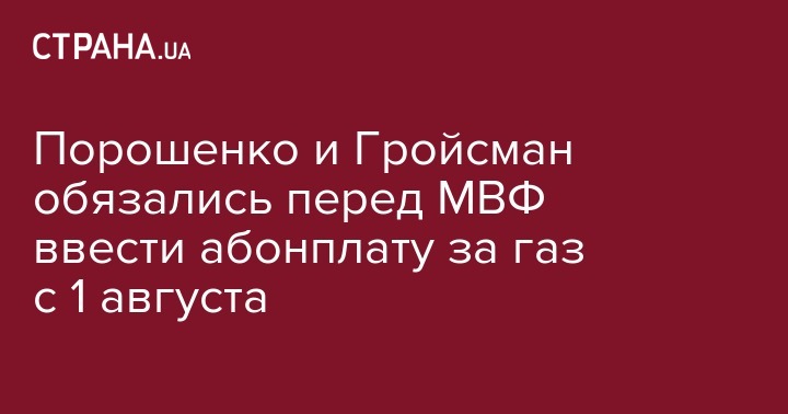 Порошенко и Гройсман обязались перед МВФ ввести абонплату за газ с 1 августа