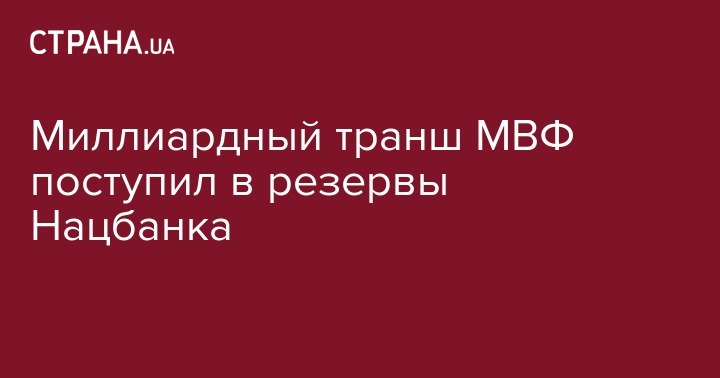 Миллиардный транш МВФ поступил в резервы Нацбанка