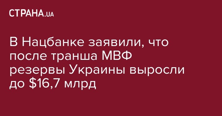 В Нацбанке заявили, что после транша МВФ резервы Украины выросли до $16,7 млрд