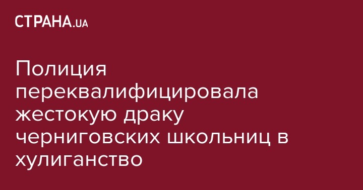 Полиция Чернигова переквалифицировала уголовное производство по жестокому избиению тремя школьницами их сверстницы из ст.125 (умышленное легкое телесное повреждение) в ст. 296 ч. 2 - хулиганство, совершенное группой лиц. Об этом сообщает пресс-служба местной полиции.
