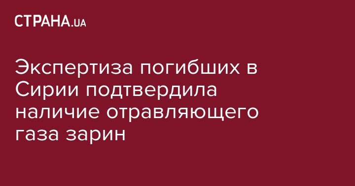 Экспертиза жертв предполагаемой химической атаки в Сирии выявила наличие отравляющего газа зарин, сообщают турецкие масс-медиа со ссылкой на Минздрав страны, передает Интерфакс.