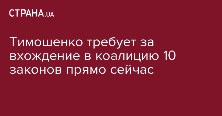 Тимошенко требует за вхождение в коалицию 10 законов прямо сейчас