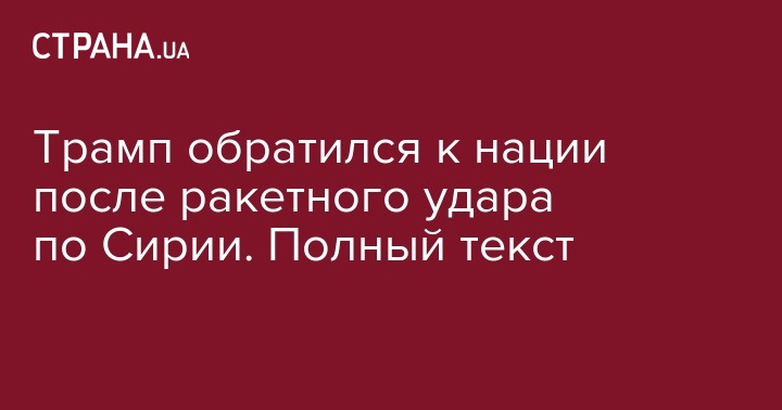 Сегодня я приказал нанести военный удар по целям в Сирии, откуда осуществлялась химическая атака. Предотвращение распространения смертельного химического оружия отвечает жизненно важным интересам нацбезопасности США.