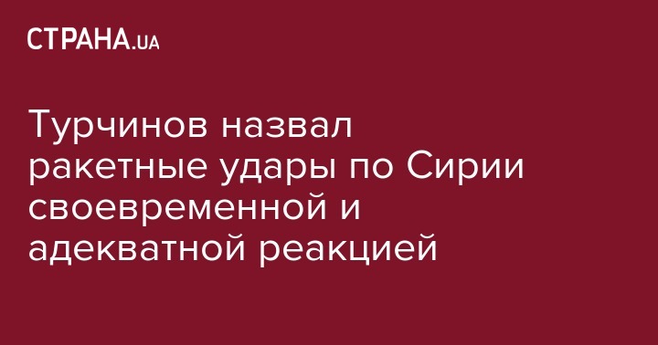 Удар крылатыми ракетами США по военному объекту в Сирии является адекватной и своевременной реакцией на применение союзником РФ Башаром Асадом химического оружия против гражданского населения. Об этом заявил секретарь СНБО Александр Турчинов во время встречи с заместителем Генерального секретаря НАТО Роуз Готтемеллер, сообщили в пресс-службе Совбеза.