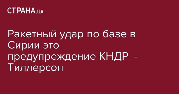 Госсекретарь США Рекс Тиллерсон заявил, что ракетный удар по сирийской военной базе Шайрат является предупреждением другим странам, в частности КНДР. Об этом сообщает Deutsche Welle
