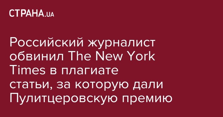 Российский журналист обвинил The New York Times в плагиате статьи, за которую дали Пулитцеровскую премию