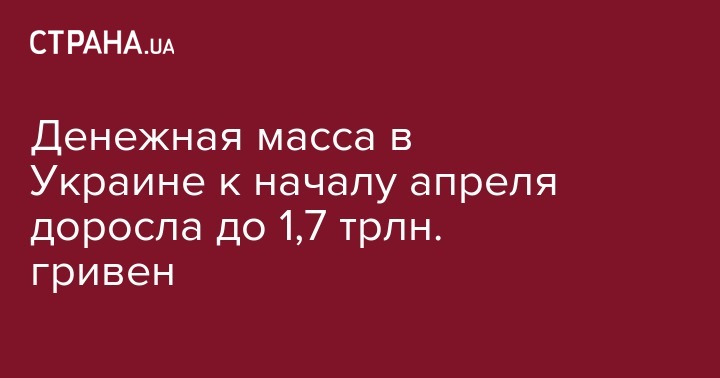 За март денежная масса в Украине выросла на 1,3% - до 1 трлн 74,1 млрд грн. Об этом сообщается в "Денежно-кредитной статистике" на сайте Национального банка Украины.
