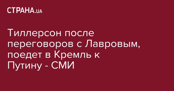 Тиллерсон после переговоров с Лавровым, поедет в Кремль к Путину - СМИ