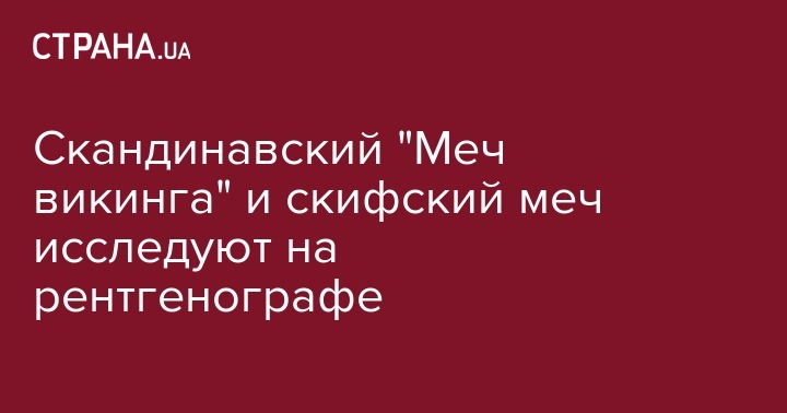 Скандинавский "Меч викинга", изъятый у черных археологов на границе с Эстонией и скифский меч, найденный недавно возле Славянска, передано на рентгенографию в Институт электросварки имени Евгения Патона с целью осуществления радиоскопического и радиографического изображения находки. Об этом сообщили в пресс-службе Минкультуры.