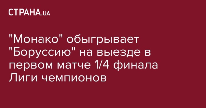 "Монако" обыгрывает "Боруссию" на выезде в первом матче 1/4 финала Лиги чемпионов