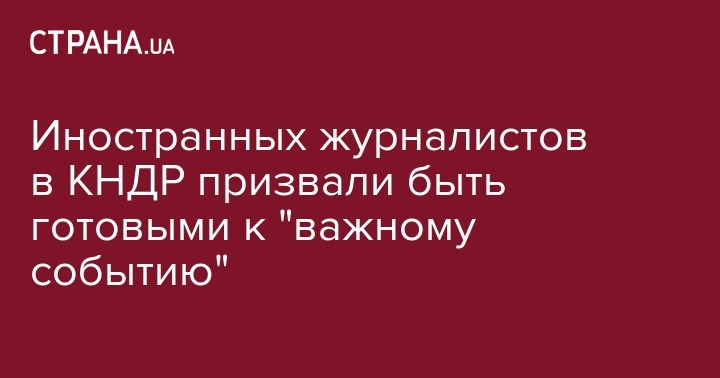 Власти Северной Кореи призвали иностранных журналистов, находящихся в стране, быть готовыми к "большому и важному событию". Об этом сообщает Reuters.