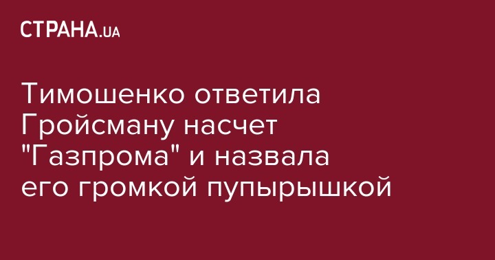 Тимошенко ответила Гройсману насчет "Газпрома" и назвала его громкой пупырышкой