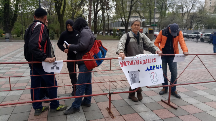 — Не, я за такое не очень хочу стоять, бред какой-то. Я за русский язык вообще порву, — ворчит самый пожилой из протестующих.