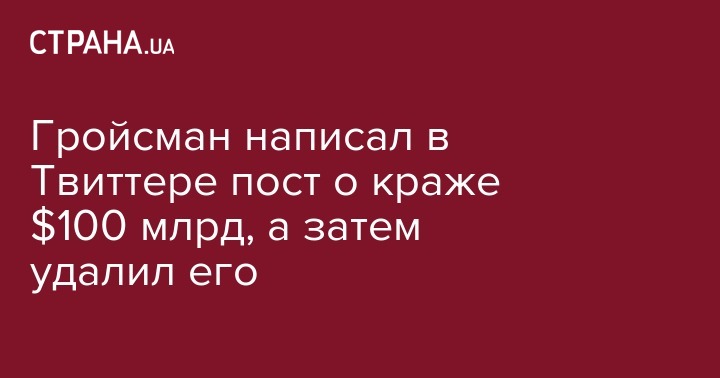 Премьер-министр Владимир Гройсман опубликовал в Twitter пост, в котором обвинил "некоторых" в краже 100 млрд долларов.