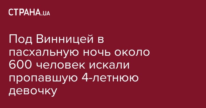 Всю пасхальную ночь в деревне Александровка Жмеринского района на Винничине полицейские, кинологи, спасатели, нацгвардейцы и местные жители искали пропавшую четырехлетнюю девочку. Об этом сообщает пресс-служба МВС Украины на своей странице в Facebook.