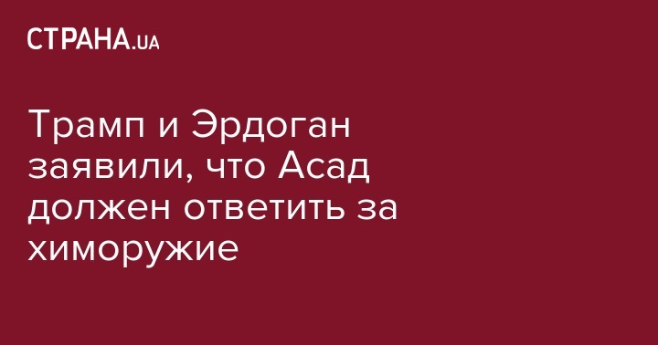 Дональд Трамп и Реджеп Эрдоган заявили о необходимости привлечь Башара Асада к ответственности после химатаки в Идлибе. Об этом со ссылкой на пресс-службу Белого дома сообщают РИА Новости.