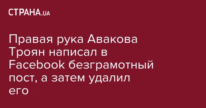 Правая рука Авакова Троян написал в Facebook безграмотный пост, а затем удалил его