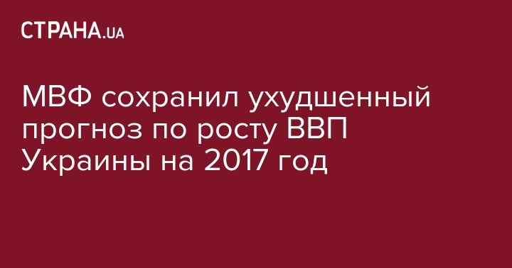 Как сообщала "Страна", в начале апреля МВФ ухудшил прогноз роста ВВП Украины в 2017 году с 2,5% до 2% по итогам 2017 года.