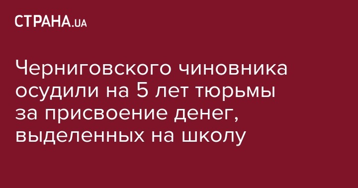 Варвинский районный суд Черниговской области осудил на 5 лет тюрьмы руководителя отдела районной государственной администрации (РГА). Чиновника признали виновным в присвоении около 400 000 гривен бюджетных средств, которые были выделены на реконструкцию школы.